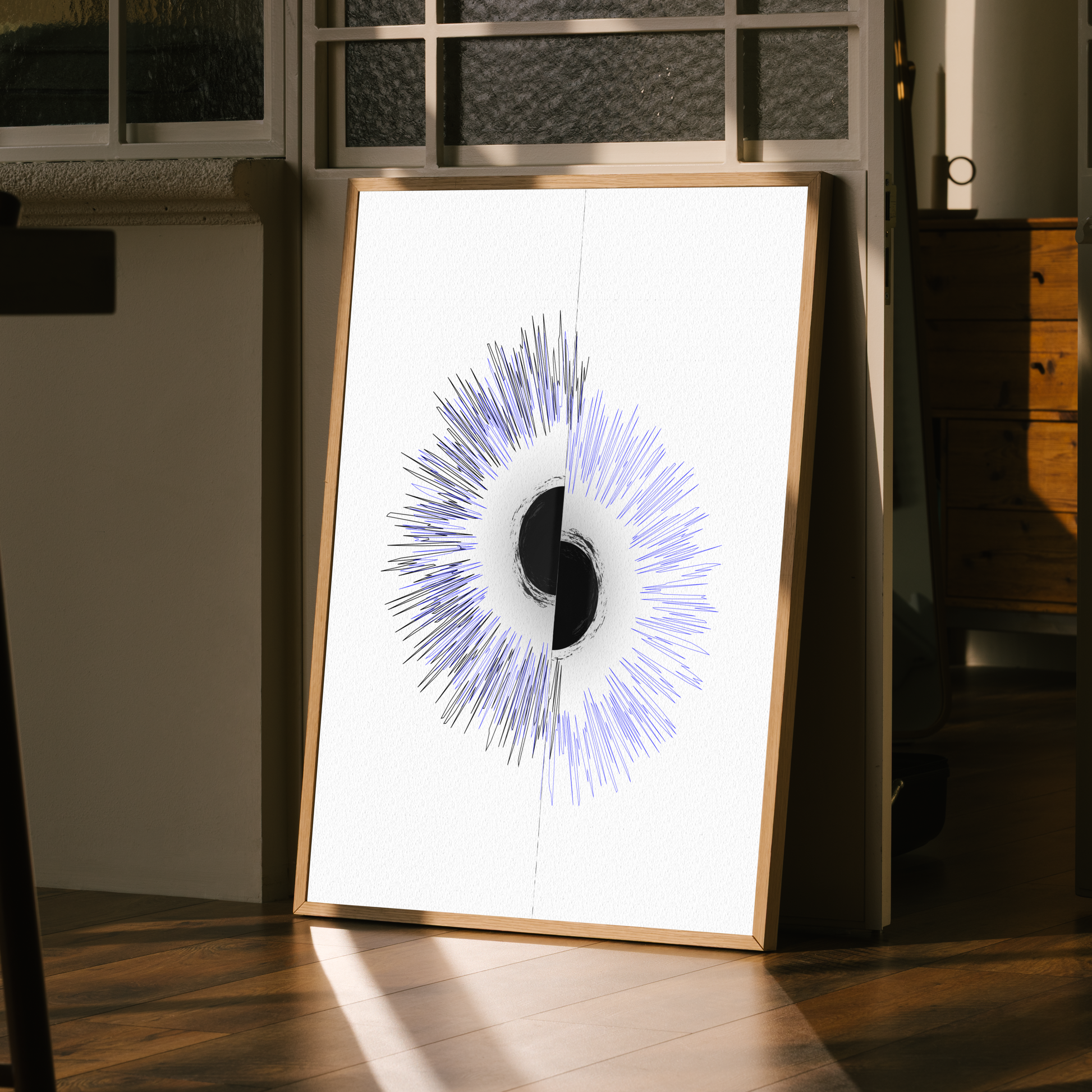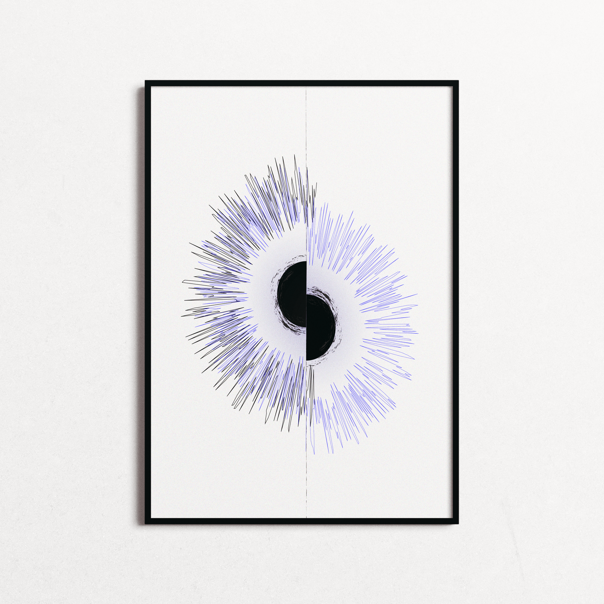 Séparation, contraste et équilibre : cette œuvre joue sur la rencontre entre deux forces opposées, créant une tension visuelle volontairement marquée. Ses lignes franches et son esthétique brute évoquent les ruptures, mais aussi la possibilité d’un nouvel équilibre.